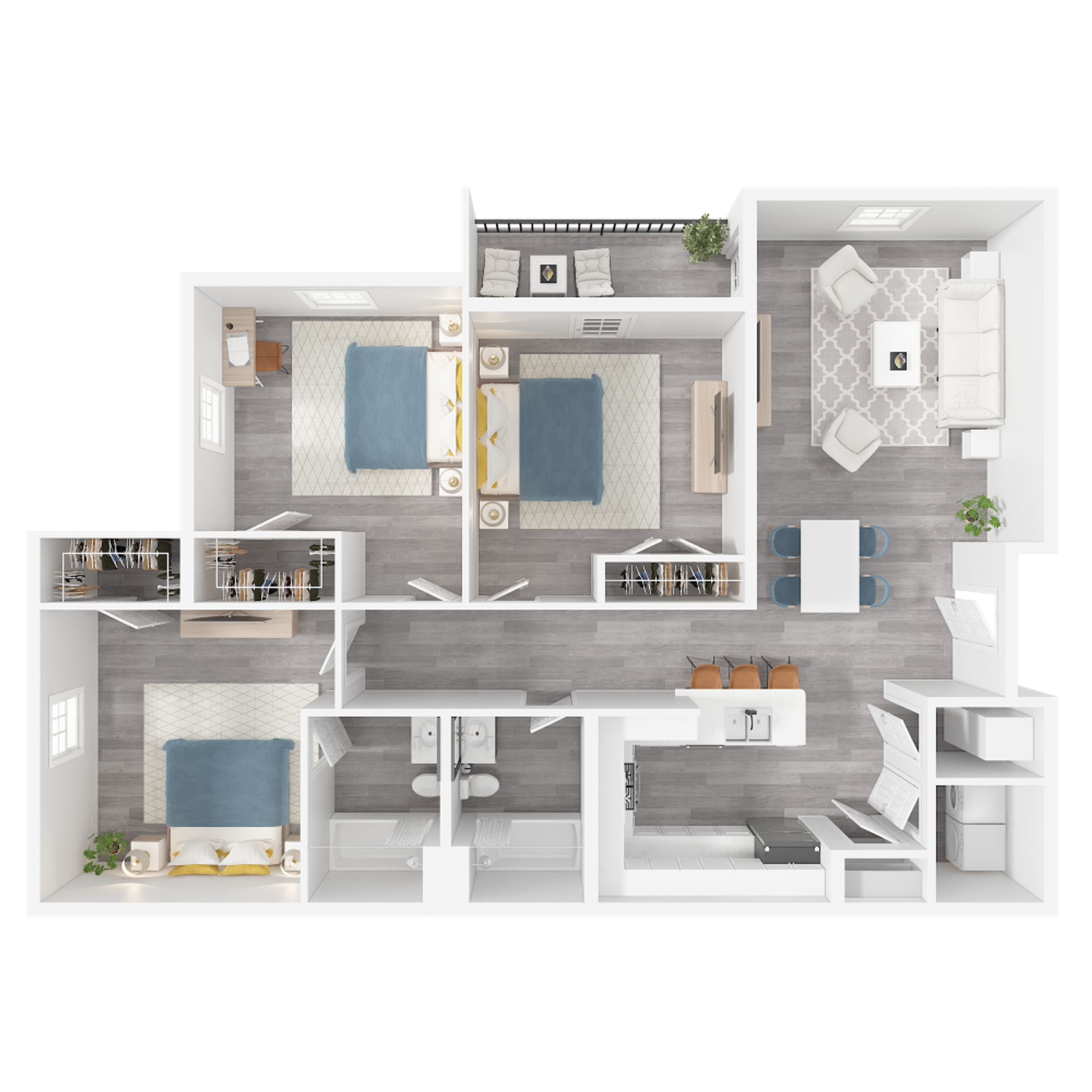 Introducing our luxurious 3-bedroom, 2-bathroom unit, now available for preleasing, perfect for those seeking both space and elegance. This unit features a private balcony for serene outdoor enjoyment. Inside, you'll find a sophisticated interior with granite countertops, white cabinetry, and high-quality vinyl wood flooring throughout.